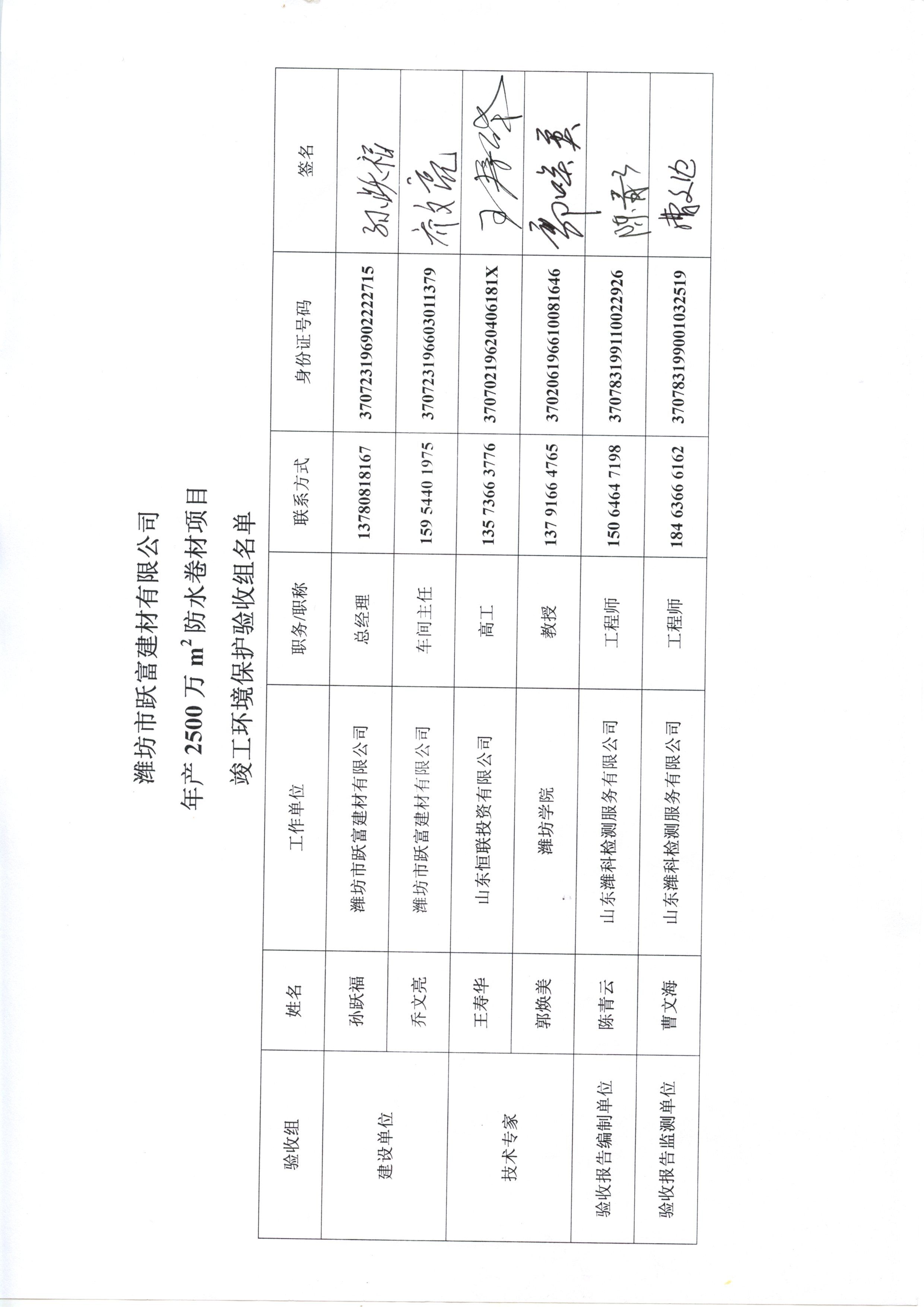 潍坊市跃富建材有限公司 年产2500万m2防水卷材项目验收公示