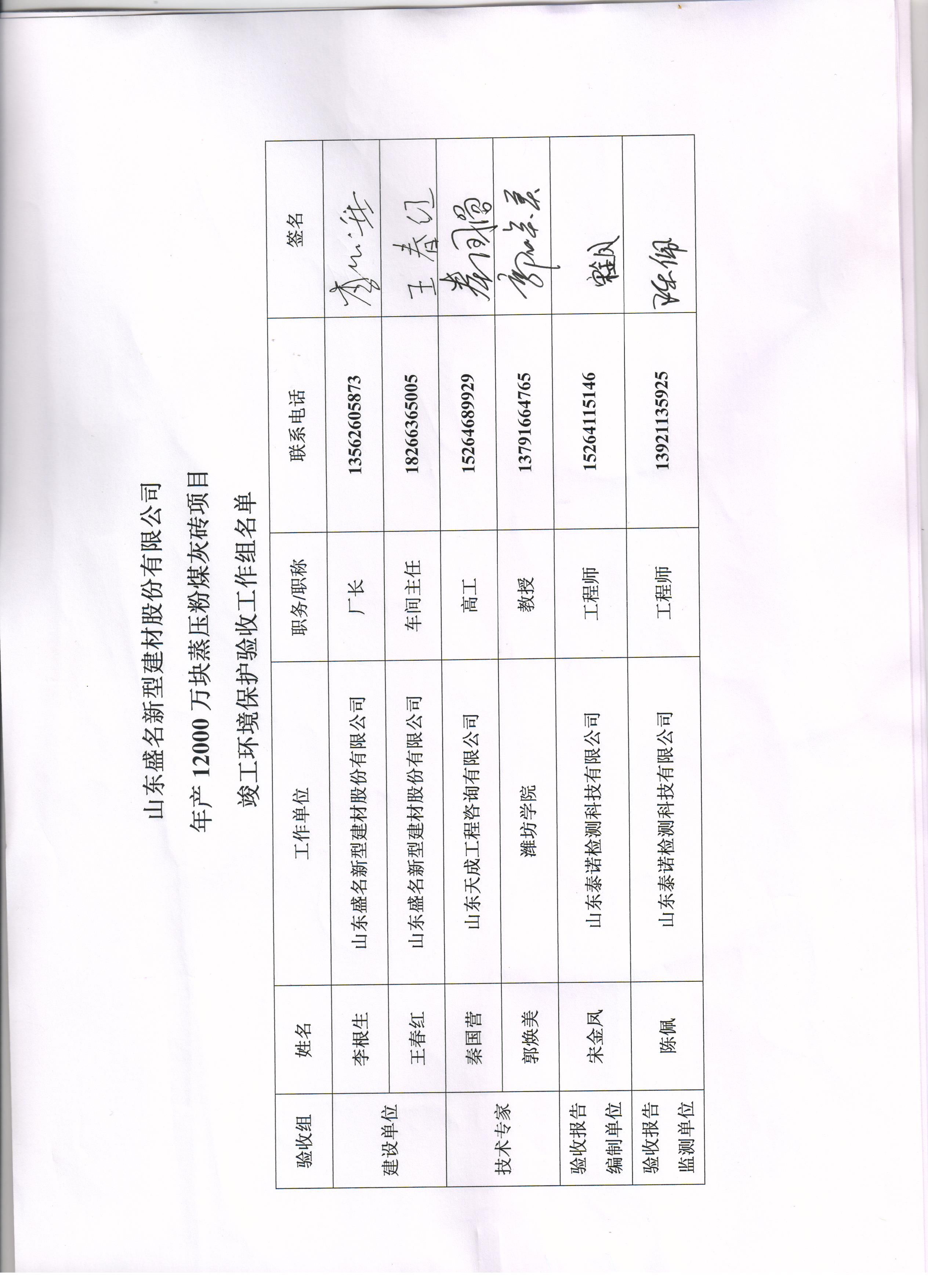 山东盛名新型建材股份有限公司 年产12000万块蒸压粉煤灰砖项目
